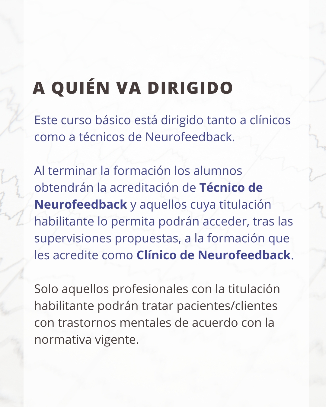 Este curso básico está dirigido tanto a clínicos como a técnicos de Neurofeedback.